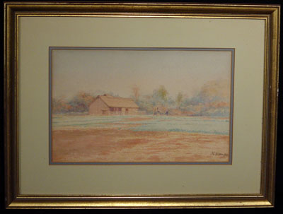 Original watercolor of a very serene Japanese farm